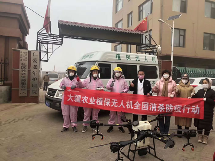 抗疫情,保春耕大疆新款T20植保無人機(jī)全國消殺防疫行動(dòng)!大疆農(nóng)業(yè)植保無人機(jī)全國消殺防疫行動(dòng)中,葫蘆島市鵬翔農(nóng)藥化工科技有限公司與葫蘆島苗多保農(nóng)業(yè)服務(wù)有限公司無償消殺防疫活動(dòng)為寺兒堡鎮(zhèn)敬老院,虹螺峴中心敬老院免費(fèi)消殺防疫。
