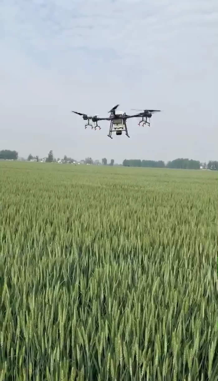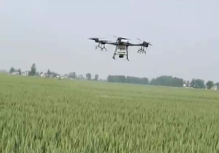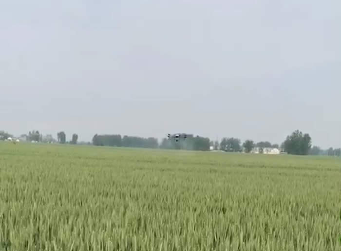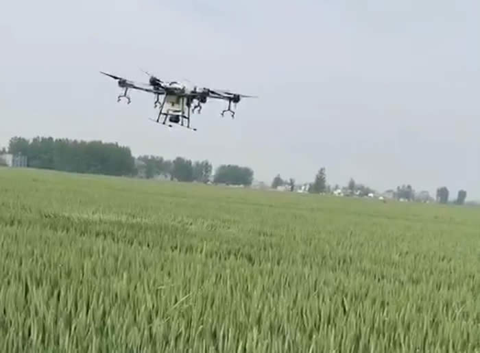 無人機(jī)在安徽阜陽市小麥一人噴三防作業(yè)