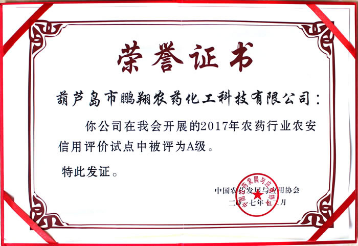 2017年農(nóng)藥行業(yè)農(nóng)安信用評(píng)價(jià)試點(diǎn)A級(jí)