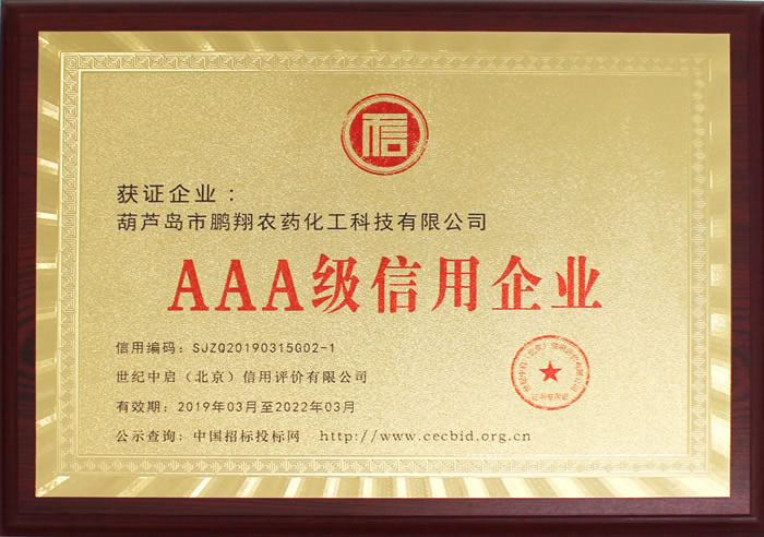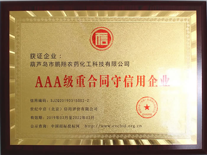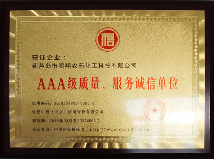 AAA級(jí)誠(chéng)信經(jīng)營(yíng)示范單位
